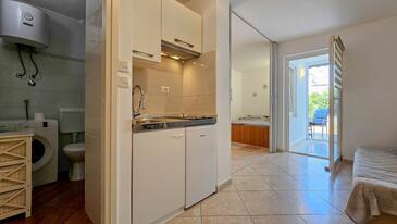 Ferienwohnung bietet Platz für 4 Gäste. Die Betten sind in Schlafzimmern, die es 1 gibt, und in Wohnzimmer, innerhalb einer Gesamtfläche von 30m2, angeordnet. Die Gäste haben eine eigene Terrasse zur Verfügung, auf der sie in warmen Sommernächten genießen können. Es ist erlaubt, Speisen auf dem Gemeinschafts-Grill vorzubereiten.