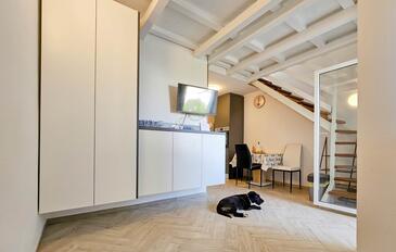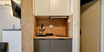 Studio bietet Platz für 2 Gäste. Die Betten sind in Schlafzimmern, die es 1 gibt, innerhalb einer Gesamtfläche von 39m2, angeordnet. Die Gäste haben einen eigenen Balkon zur Verfügung, auf der sie in warmen Sommernächten genießen können. In der Unterkunftseinheit besteht die Möglichkeit des Mitbringens von Haustieren gegen Aufpreis.