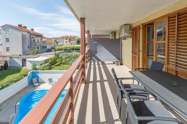 Ferienwohnung bietet Platz für 8 Gäste. Die Betten sind in Schlafzimmern, die es 3 gibt, und in Wohnzimmer, innerhalb einer Gesamtfläche von 108m2, angeordnet. Die Gäste haben eine eigene Terrasse zur Verfügung, auf der sie in warmen Sommernächten genießen können. Es ist erlaubt, Speisen auf dem Gemeinschafts-Grill vorzubereiten. Während ihres Aufenthalts können Gäste das gemeinsam zur Nutzung stehende Schwimmbad benutzen.