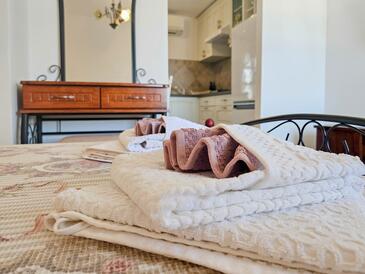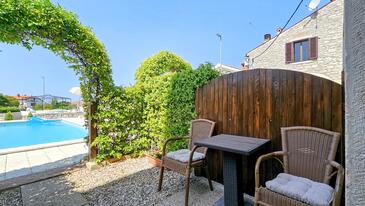 Ferienwohnung bietet Platz für 2 Gäste. Die Betten sind in Schlafzimmern, die es 1 gibt, innerhalb einer Gesamtfläche von 30m2, angeordnet. Die Gäste haben eine eigene Terrasse zur Verfügung, auf der sie in warmen Sommernächten genießen können. Während ihres Aufenthalts können Gäste das gemeinsam zur Nutzung stehende Schwimmbad benutzen.