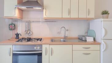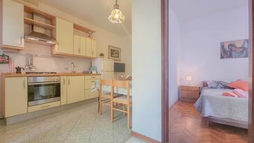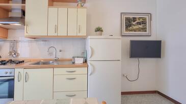 Ferienwohnung bietet Platz für 4 Gäste. Die Betten sind in Schlafzimmern, die es 2 gibt, innerhalb einer Gesamtfläche von 45m2, angeordnet. Die Gäste haben eine eigene Terrasse zur Verfügung, auf der sie in warmen Sommernächten genießen können. Es ist erlaubt, Speisen auf dem Gemeinschafts-Grill vorzubereiten.
