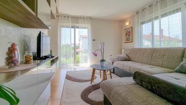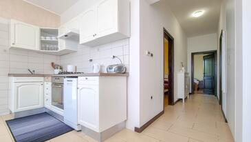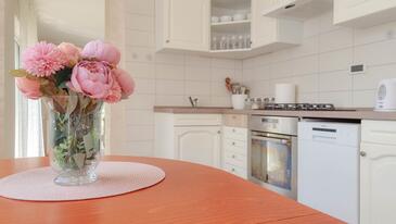 Ferienwohnung bietet Platz für 4 Gäste. Die Betten sind in Schlafzimmern, die es 2 gibt, innerhalb einer Gesamtfläche von 76m2, angeordnet. Die Gäste haben eine eigene Terrasse zur Verfügung, auf der sie in warmen Sommernächten genießen können. Es ist erlaubt, Speisen auf dem Gemeinschafts-Grill vorzubereiten.