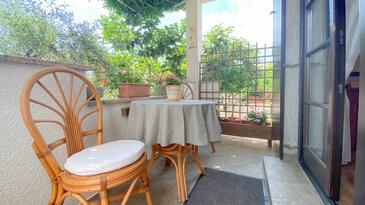 Studio bietet Platz für 2 Gäste. Die Betten sind in Schlafzimmern, die es 1 gibt, innerhalb einer Gesamtfläche von 26m2, angeordnet. Die Gäste haben eine eigene Terrasse zur Verfügung, auf der sie in warmen Sommernächten genießen können.