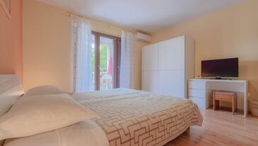 Ferienwohnung bietet Platz für 5 Gäste. Die Betten sind in Schlafzimmern, die es 2 gibt, innerhalb einer Gesamtfläche von 44m2, angeordnet. Die Gäste haben eine eigene Terrasse zur Verfügung, auf der sie in warmen Sommernächten genießen können. Es ist erlaubt, Speisen auf dem Gemeinschafts-Grill vorzubereiten.
