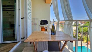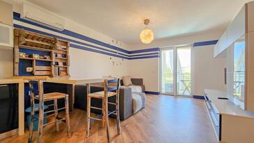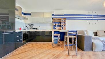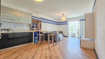 Ferienwohnung bietet Platz für 3 Gäste. Die Betten sind in Schlafzimmern, die es 1 gibt, und in Wohnzimmer, innerhalb einer Gesamtfläche von 36m2, angeordnet. Die Gäste haben einen eigenen Balkon zur Verfügung, auf der sie in warmen Sommernächten genießen können. Das Apartment bietet Meerblick. Für vollen Genuss und Entspannung gibt es einen privaten Grill für Gäste dieser Unterkunft. Während ihres Aufenthalts können Gäste das gemeinsam zur Nutzung stehende Schwimmbad benutzen.