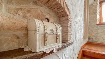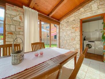 Haus bietet Platz für 4 Gäste. Die Betten sind in Schlafzimmern, die es 2 gibt, innerhalb einer Gesamtfläche von 60m2, angeordnet. Die Gäste haben eine eigene Terrasse zur Verfügung, auf der sie in warmen Sommernächten genießen können. Es ist erlaubt, Speisen auf dem Gemeinschafts-Grill vorzubereiten. In der Unterkunftseinheit besteht die Möglichkeit des Mitbringens von Haustieren gegen Aufpreis.