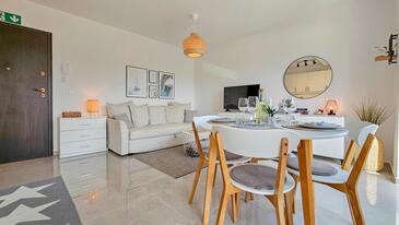Ferienwohnung bietet Platz für 4 Gäste. Die Betten sind in Schlafzimmern, die es 1 gibt, und in Wohnzimmer, innerhalb einer Gesamtfläche von 40m2, angeordnet. Die Gäste haben eine eigene Terrasse zur Verfügung, auf der sie in warmen Sommernächten genießen können. Für vollen Genuss und Entspannung gibt es einen privaten Grill für Gäste dieser Unterkunft. Während ihres Aufenthalts können Gäste das gemeinsam zur Nutzung stehende Schwimmbad benutzen. In der Unterkunftseinheit besteht die Möglichkeit des Mitbringens von Haustieren gegen Aufpreis.