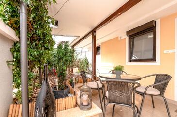 Ferienwohnung bietet Platz für 2 Gäste. Die Betten sind in Schlafzimmern, die es 1 gibt, innerhalb einer Gesamtfläche von 51m2, angeordnet. Die Gäste haben eine eigene Terrasse zur Verfügung, auf der sie in warmen Sommernächten genießen können.