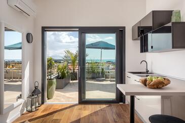 Ferienwohnung bietet Platz für 4 Gäste. Die Betten sind in Schlafzimmern, die es 2 gibt, innerhalb einer Gesamtfläche von 58m2, angeordnet. Die Gäste haben einen eigenen Balkon zur Verfügung, auf der sie in warmen Sommernächten genießen können. Das Apartment bietet Meerblick.