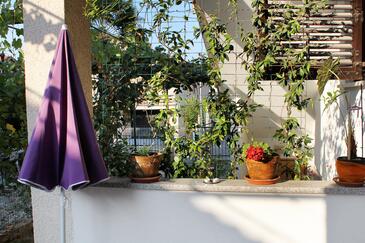 Ferienwohnung bietet Platz für 4 Gäste. Die Betten sind in Schlafzimmern, die es 2 gibt, innerhalb einer Gesamtfläche von 50m2, angeordnet. Die Gäste haben eine eigene Terrasse zur Verfügung, auf der sie in warmen Sommernächten genießen können. Es ist erlaubt, Speisen auf dem Gemeinschafts-Grill vorzubereiten.