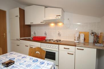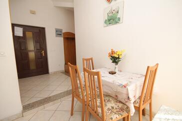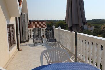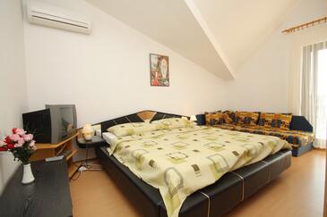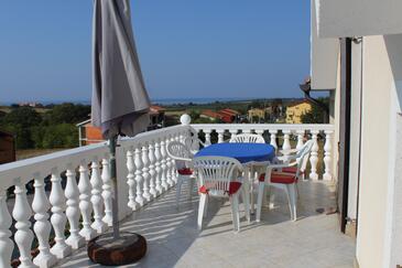 Ferienwohnung bietet Platz für 5 Gäste. Die Betten sind in Schlafzimmern, die es 2 gibt, innerhalb einer Gesamtfläche von 42m2, angeordnet. Die Gäste haben eine eigene Terrasse zur Verfügung, auf der sie in warmen Sommernächten genießen können. Das Apartment bietet Meerblick. Es ist erlaubt, Speisen auf dem Gemeinschafts-Grill vorzubereiten.