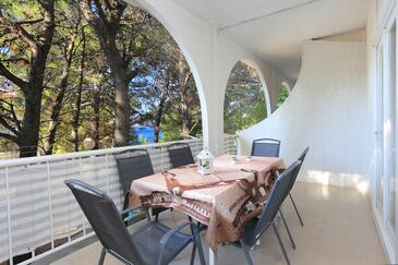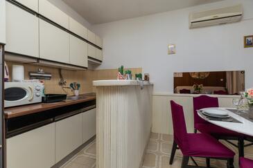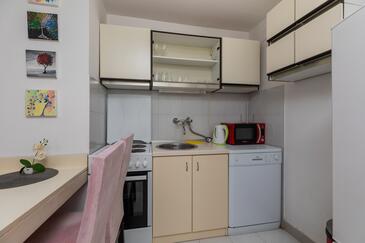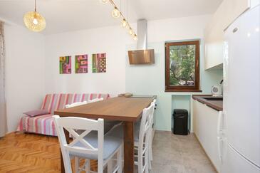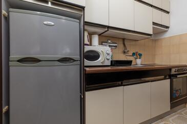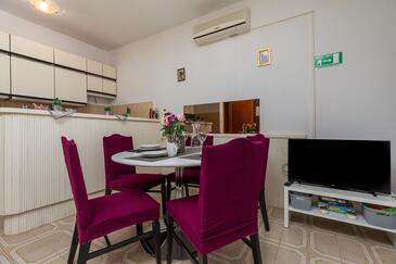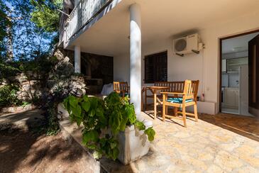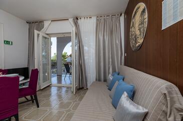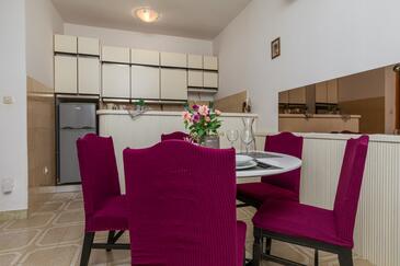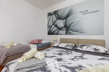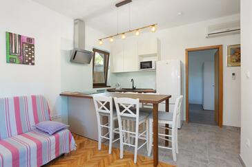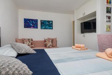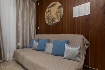 Ferienwohnung bietet Platz für 6 Gäste. Die Betten sind in Schlafzimmern, die es 2 gibt, und in Wohnzimmer, innerhalb einer Gesamtfläche von 43m2, angeordnet. Die Gäste haben eine eigene Terrasse zur Verfügung, auf der sie in warmen Sommernächten genießen können. Für vollen Genuss und Entspannung gibt es einen privaten Grill für Gäste dieser Unterkunft. In der Unterkunftseinheit besteht die Möglichkeit des Mitbringens von Haustieren gegen Aufpreis.