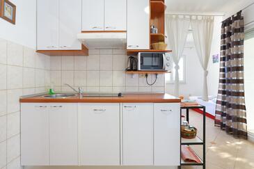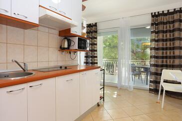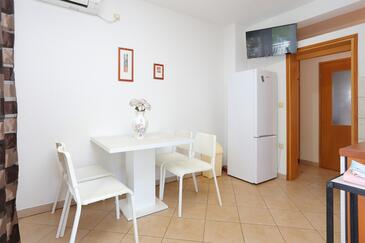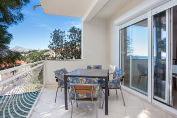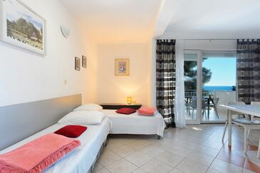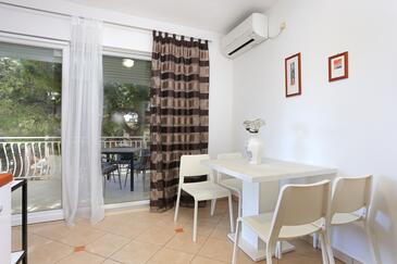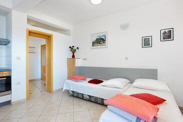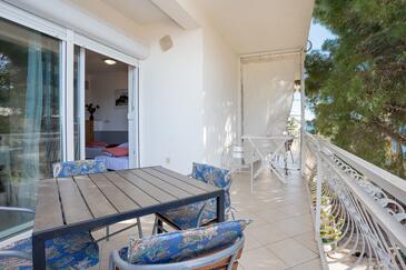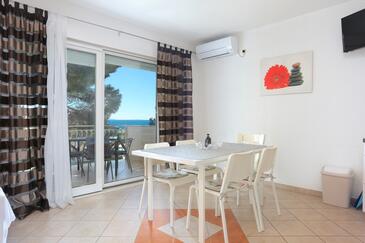 Ferienwohnung bietet Platz für 5 Gäste. Die Betten sind in Schlafzimmern, die es 1 gibt, und in Wohnzimmer, innerhalb einer Gesamtfläche von 49m2, angeordnet. Die Gäste haben eine eigene Terrasse zur Verfügung, auf der sie in warmen Sommernächten genießen können. Das Apartment bietet Meerblick. Es ist erlaubt, Speisen auf dem Gemeinschafts-Grill vorzubereiten.