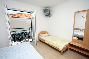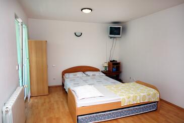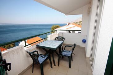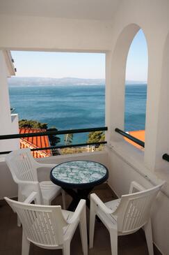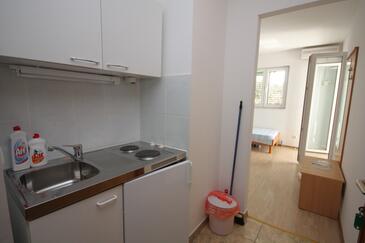 Ferienwohnung bietet Platz für 4 Gäste. Die Betten sind in Schlafzimmern, die es 1 gibt, und in Esszimmer, innerhalb einer Gesamtfläche von 27m2, angeordnet. Die Gäste haben eine eigene Terrasse zur Verfügung, auf der sie in warmen Sommernächten genießen können. Das Apartment bietet Meerblick. Es ist erlaubt, Speisen auf dem Gemeinschafts-Grill vorzubereiten.