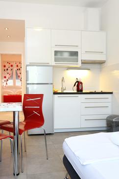 Ferienwohnung bietet Platz für 4 Gäste. Die Betten sind in Schlafzimmern, die es 1 gibt, und in Wohnzimmer, innerhalb einer Gesamtfläche von 27m2, angeordnet. Das Apartment bietet Meerblick. Es ist erlaubt, Speisen auf dem Gemeinschafts-Grill vorzubereiten. Die reservierte Unterkunftseinheit verfügt über einen gemeinsame Terrasse.