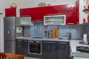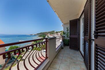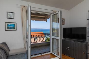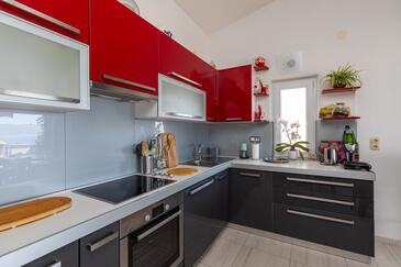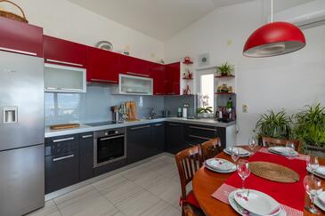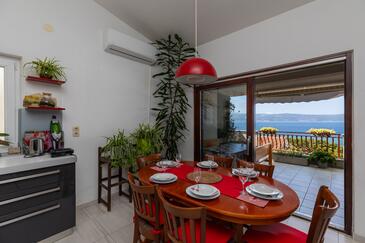 Ferienwohnung bietet Platz für 9 Gäste. Die Betten sind in Schlafzimmern, die es 3 gibt, und in Wohnzimmer, innerhalb einer Gesamtfläche von 76m2, angeordnet. Die Gäste haben eine eigene Terrasse zur Verfügung, auf der sie in warmen Sommernächten genießen können. Das Apartment bietet Meerblick. Es ist erlaubt, Speisen auf dem Gemeinschafts-Grill vorzubereiten.