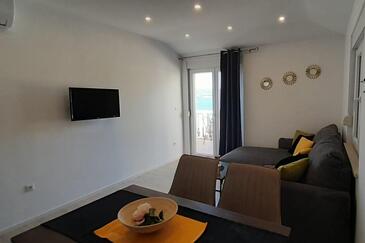 Ferienwohnung bietet Platz für 5 Gäste. Die Betten sind in Schlafzimmern, die es 2 gibt, und in Wohnzimmer, innerhalb einer Gesamtfläche von 58m2, angeordnet. Die Gäste haben eine eigene Terrasse zur Verfügung, auf der sie in warmen Sommernächten genießen können. Das Apartment bietet Meerblick.