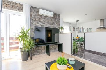 Ferienwohnung bietet Platz für 6 Gäste. Die Betten sind in Schlafzimmern, die es 3 gibt, innerhalb einer Gesamtfläche von 80m2, angeordnet. Die Gäste haben einen eigenen Balkon zur Verfügung, auf der sie in warmen Sommernächten genießen können. Das Apartment bietet Meerblick. Es ist erlaubt, Speisen auf dem Gemeinschafts-Grill vorzubereiten. In der Unterkunftseinheit besteht die Möglichkeit des Mitbringens von Haustieren, und die Dienstleistung ist im Preis der Unterkunft enthalten.