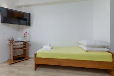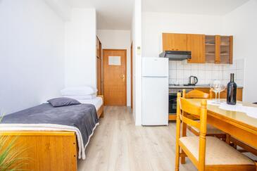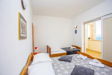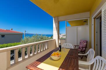 Ferienwohnung bietet Platz für 6 Gäste. Die Betten sind in Schlafzimmern, die es 2 gibt, und in Wohnzimmer, innerhalb einer Gesamtfläche von 49m2, angeordnet. Die Gäste haben einen eigenen Balkon zur Verfügung, auf der sie in warmen Sommernächten genießen können. Das Apartment bietet Meerblick. Es ist erlaubt, Speisen auf dem Gemeinschafts-Grill vorzubereiten.