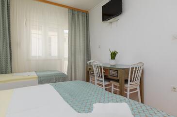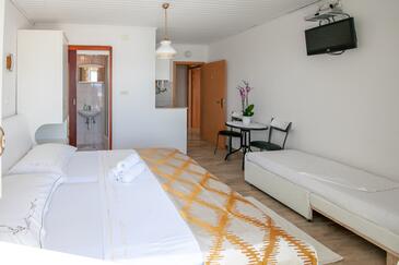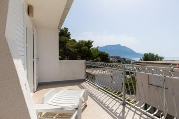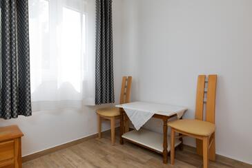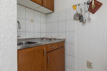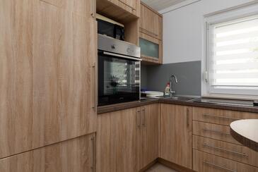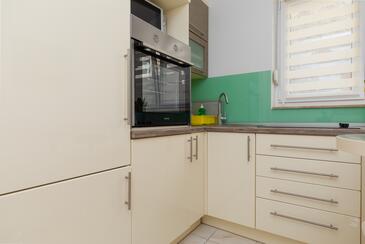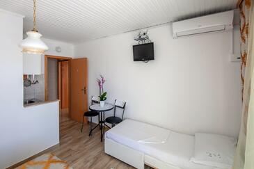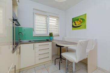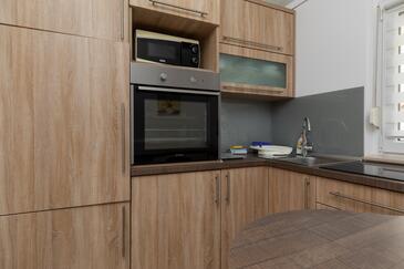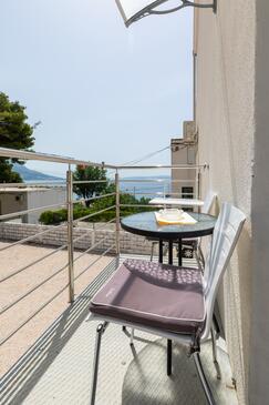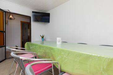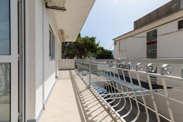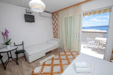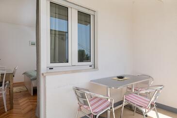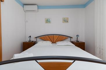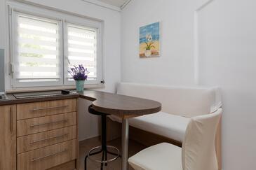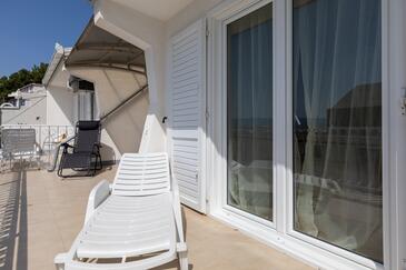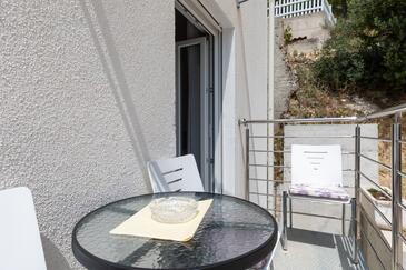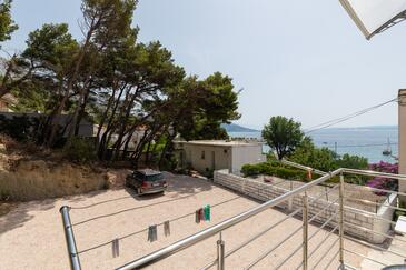 Ferienwohnung bietet Platz für 7 Gäste. Die Betten sind in Schlafzimmern, die es 2 gibt, innerhalb einer Gesamtfläche von 48m2, angeordnet. Die Gäste haben eine eigene Terrasse zur Verfügung, auf der sie in warmen Sommernächten genießen können. Das Apartment bietet Meerblick. Es ist erlaubt, Speisen auf dem Gemeinschafts-Grill vorzubereiten.