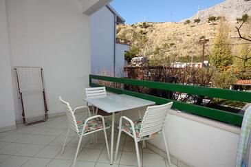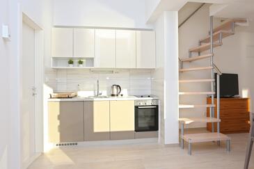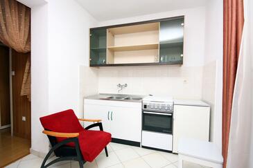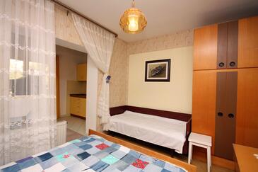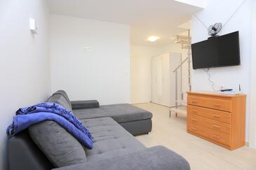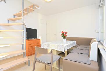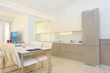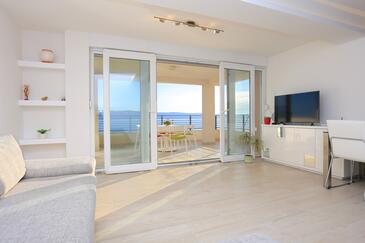 Ferienwohnung bietet Platz für 4 Gäste. Die Betten sind in Schlafzimmern, die es 1 gibt, und in Wohnzimmer, innerhalb einer Gesamtfläche von 47m2, angeordnet. Die Gäste haben eine eigene Terrasse zur Verfügung, auf der sie in warmen Sommernächten genießen können. Das Apartment bietet Meerblick. Es ist erlaubt, Speisen auf dem Gemeinschafts-Grill vorzubereiten.