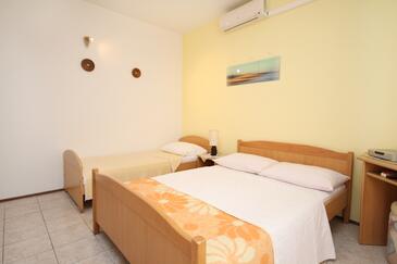 Ferienwohnung bietet Platz für 3 Gäste. Die Betten sind in Schlafzimmern, die es 1 gibt, innerhalb einer Gesamtfläche von 29m2, angeordnet. Die Gäste haben eine eigene Terrasse zur Verfügung, auf der sie in warmen Sommernächten genießen können. Das Apartment bietet Meerblick. Es ist erlaubt, Speisen auf dem Gemeinschafts-Grill vorzubereiten.