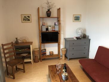 Ferienwohnung bietet Platz für 5 Gäste. Die Betten sind in Schlafzimmern, die es 2 gibt, und in Wohnzimmer, innerhalb einer Gesamtfläche von 69m2, angeordnet. Die Gäste haben eine eigene Terrasse zur Verfügung, auf der sie in warmen Sommernächten genießen können. Das Apartment bietet Meerblick.