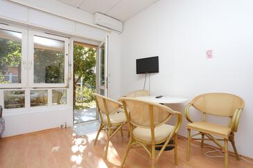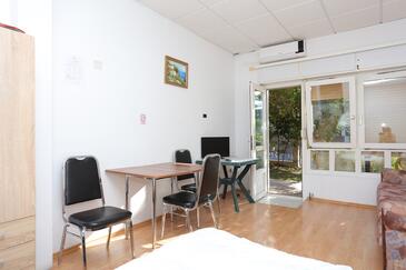 Studio bietet Platz für 3 Gäste. Die Betten sind in Schlafzimmern, die es 1 gibt, und in Wohnzimmer, innerhalb einer Gesamtfläche von 23m2, angeordnet. Die Gäste haben eine eigene Terrasse zur Verfügung, auf der sie in warmen Sommernächten genießen können. Es ist erlaubt, Speisen auf dem Gemeinschafts-Grill vorzubereiten.