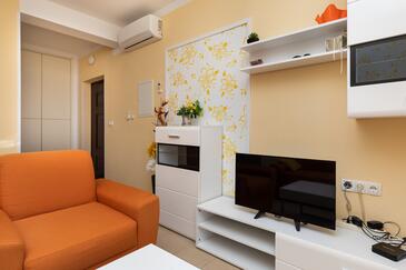 Ferienwohnung bietet Platz für 4 Gäste. Die Betten sind in Schlafzimmern, die es 1 gibt, und in Wohnzimmer, innerhalb einer Gesamtfläche von 46m2, angeordnet. Die Gäste haben einen eigenen Balkon zur Verfügung, auf der sie in warmen Sommernächten genießen können. Das Apartment bietet Meerblick. Es ist erlaubt, Speisen auf dem Gemeinschafts-Grill vorzubereiten.