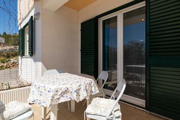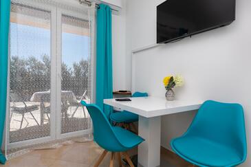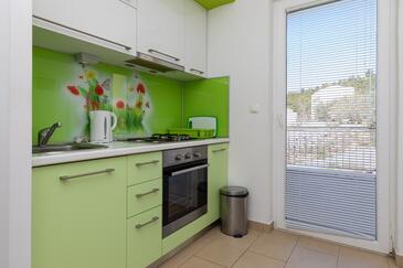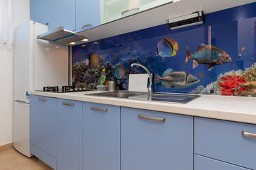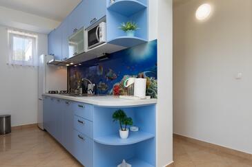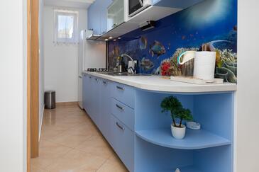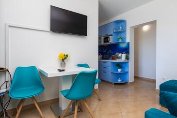 Ferienwohnung bietet Platz für 4 Gäste. Die Betten sind in Schlafzimmern, die es 1 gibt, und in Wohnzimmer, innerhalb einer Gesamtfläche von 46m2, angeordnet. Die Gäste haben einen eigenen Balkon zur Verfügung, auf der sie in warmen Sommernächten genießen können. Das Apartment bietet Meerblick. Es ist erlaubt, Speisen auf dem Gemeinschafts-Grill vorzubereiten.