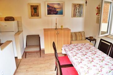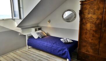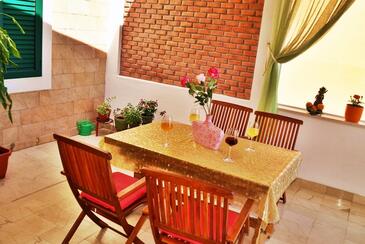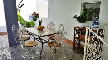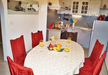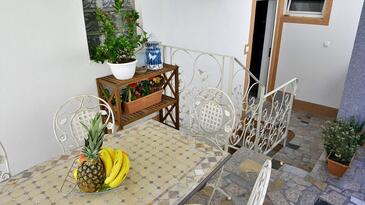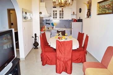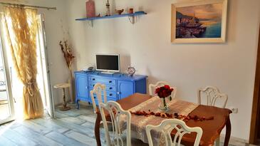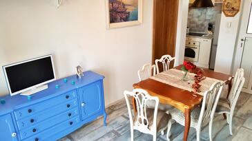 Ferienwohnung bietet Platz für 5 Gäste. Die Betten sind in Schlafzimmern, die es 2 gibt, innerhalb einer Gesamtfläche von 52m2, angeordnet. Die Gäste haben eine eigene Terrasse zur Verfügung, auf der sie in warmen Sommernächten genießen können. Das Apartment bietet Meerblick.