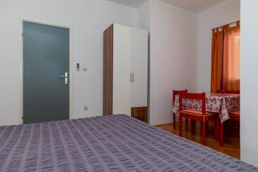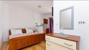 Studio bietet Platz für 4 Gäste. Die Betten sind in Schlafzimmern, die es 1 gibt, innerhalb einer Gesamtfläche von 26m2, angeordnet. Die Gäste haben einen eigenen Balkon zur Verfügung, auf der sie in warmen Sommernächten genießen können. Das Studio-Apartment bietet Meerblick. Es ist erlaubt, Speisen auf dem Gemeinschafts-Grill vorzubereiten.