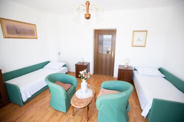 Ferienwohnung bietet Platz für 4 Gäste. Die Betten sind in Schlafzimmern, die es 1 gibt, und in Wohnzimmer, innerhalb einer Gesamtfläche von 71m2, angeordnet. Die Gäste haben eine eigene Terrasse zur Verfügung, auf der sie in warmen Sommernächten genießen können. Das Apartment bietet Meerblick. Es ist erlaubt, Speisen auf dem Gemeinschafts-Grill vorzubereiten. In der Unterkunftseinheit besteht die Möglichkeit des Mitbringens von Haustieren, und die Dienstleistung ist im Preis der Unterkunft enthalten.
