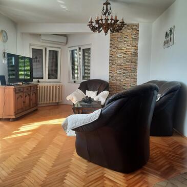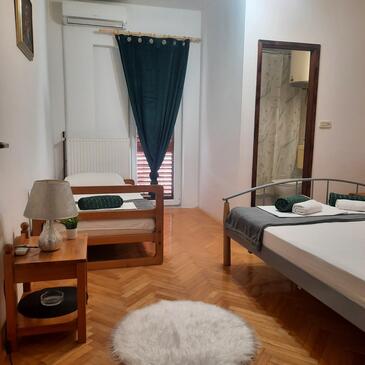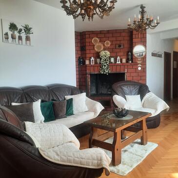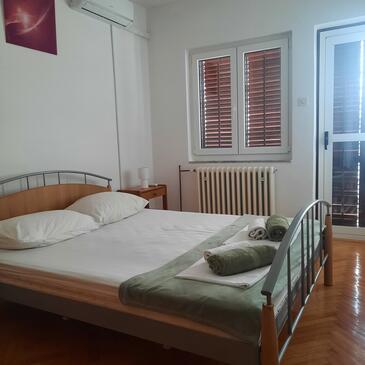 Ferienwohnung bietet Platz für 11 Gäste. Die Betten sind in Schlafzimmern, die es 4 gibt, innerhalb einer Gesamtfläche von 110m2, angeordnet. Die Gäste haben eine eigene Terrasse zur Verfügung, auf der sie in warmen Sommernächten genießen können. Das Apartment bietet Meerblick. Es ist erlaubt, Speisen auf dem Gemeinschafts-Grill vorzubereiten.