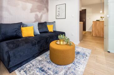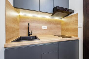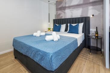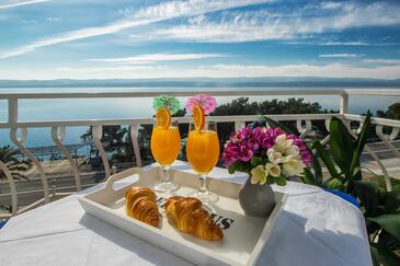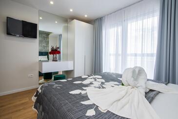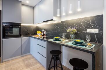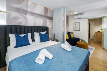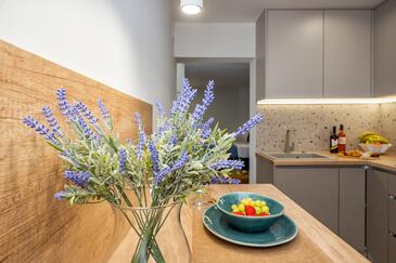 Ferienwohnung bietet Platz für 2 Gäste. Die Betten sind in Schlafzimmern, die es 1 gibt, innerhalb einer Gesamtfläche von 32m2, angeordnet. Die Gäste haben einen eigenen Balkon zur Verfügung, auf der sie in warmen Sommernächten genießen können. Das Apartment bietet Meerblick. Es ist erlaubt, Speisen auf dem Gemeinschafts-Grill vorzubereiten.