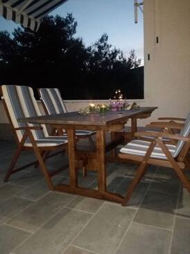 Ferienwohnung bietet Platz für 8 Gäste. Die Betten sind in Schlafzimmern, die es 3 gibt, und in Wohnzimmer, innerhalb einer Gesamtfläche von 88m2, angeordnet. Die Gäste haben einen eigenen Balkon zur Verfügung, auf der sie in warmen Sommernächten genießen können. Das Apartment bietet Meerblick. Es ist erlaubt, Speisen auf dem Gemeinschafts-Grill vorzubereiten. In der Unterkunftseinheit besteht die Möglichkeit des Mitbringens von Haustieren gegen Aufpreis.