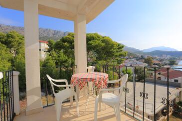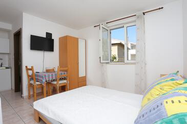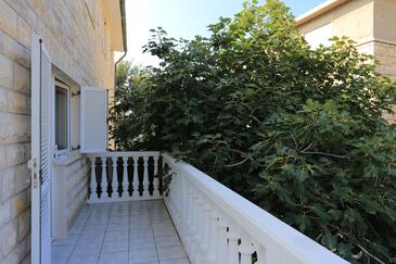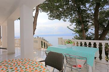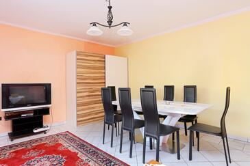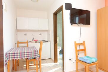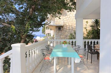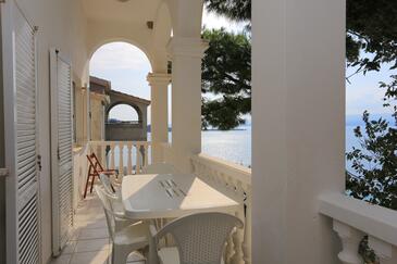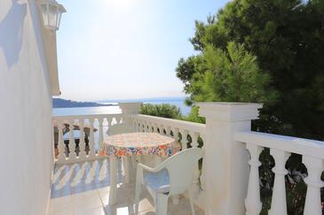 Ferienwohnung bietet Platz für 8 Gäste. Die Betten sind in Schlafzimmern, die es 2 gibt, und in Wohnzimmer, innerhalb einer Gesamtfläche von 80m2, angeordnet. Die Gäste haben eine eigene Terrasse zur Verfügung, auf der sie in warmen Sommernächten genießen können. Das Apartment bietet Meerblick. Es ist erlaubt, Speisen auf dem Gemeinschafts-Grill vorzubereiten.