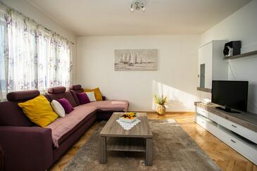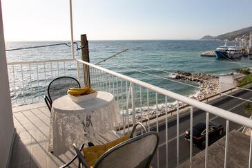 Ferienwohnung bietet Platz für 6 Gäste. Die Betten sind in Schlafzimmern, die es 3 gibt, innerhalb einer Gesamtfläche von 89m2, angeordnet. Die Gäste haben einen eigenen Balkon zur Verfügung, auf der sie in warmen Sommernächten genießen können. Das Apartment bietet Meerblick. Es ist erlaubt, Speisen auf dem Gemeinschafts-Grill vorzubereiten. Räume der gebuchten Unterkunftseinheit werden nicht in eine Ganze verbunden.