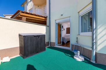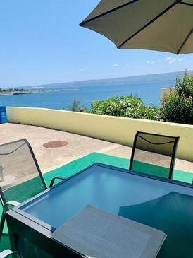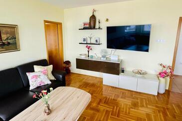Ferienwohnung bietet Platz für 5 Gäste. Die Betten sind in Schlafzimmern, die es 2 gibt, und in Wohnzimmer, innerhalb einer Gesamtfläche von 60m2, angeordnet. Die Gäste haben eine eigene Terrasse zur Verfügung, auf der sie in warmen Sommernächten genießen können. Das Apartment bietet Meerblick.