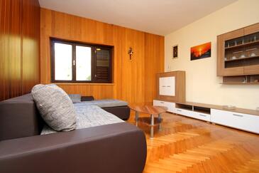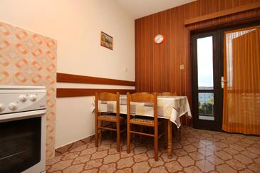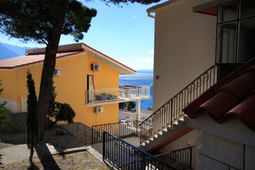 Ferienwohnung bietet Platz für 6 Gäste. Die Betten sind in Schlafzimmern, die es 2 gibt, und in Wohnzimmer, innerhalb einer Gesamtfläche von 67m2, angeordnet. Die Gäste haben einen eigenen Balkon zur Verfügung, auf der sie in warmen Sommernächten genießen können. Das Apartment bietet Meerblick. Es ist erlaubt, Speisen auf dem Gemeinschafts-Grill vorzubereiten. Während ihres Aufenthalts können Gäste das gemeinsam zur Nutzung stehende Schwimmbad benutzen. In der Unterkunftseinheit besteht die Möglichkeit des Mitbringens von Haustieren gegen Aufpreis.