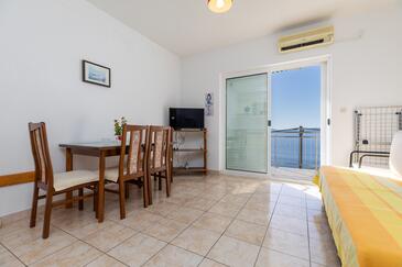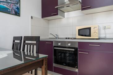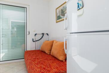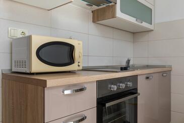 Ferienwohnung bietet Platz für 4 Gäste. Die Betten sind in Schlafzimmern, die es 1 gibt, und in Wohnzimmer, innerhalb einer Gesamtfläche von 38m2, angeordnet. Die Gäste haben einen eigenen Balkon zur Verfügung, auf der sie in warmen Sommernächten genießen können. Das Apartment bietet Meerblick. Es ist erlaubt, Speisen auf dem Gemeinschafts-Grill vorzubereiten.