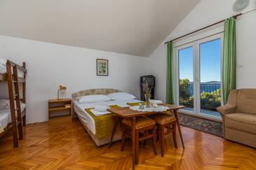 Studio bietet Platz für 3 Gäste. Die Betten sind in Schlafzimmern, die es 1 gibt, innerhalb einer Gesamtfläche von 21m2, angeordnet. Die Gäste haben einen eigenen Balkon zur Verfügung, auf der sie in warmen Sommernächten genießen können. Das Studio-Apartment bietet Meerblick. Es ist erlaubt, Speisen auf dem Gemeinschafts-Grill vorzubereiten.