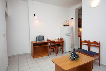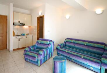 Ferienwohnung bietet Platz für 4 Gäste. Die Betten sind in Schlafzimmern, die es 1 gibt, und in Wohnzimmer, innerhalb einer Gesamtfläche von 30m2, angeordnet. Die Gäste haben einen eigenen Balkon zur Verfügung, auf der sie in warmen Sommernächten genießen können. Das Apartment bietet Meerblick. Es ist erlaubt, Speisen auf dem Gemeinschafts-Grill vorzubereiten.