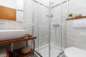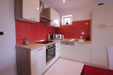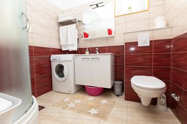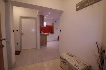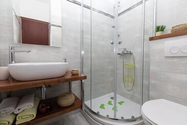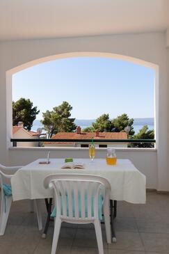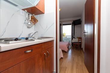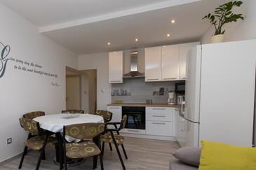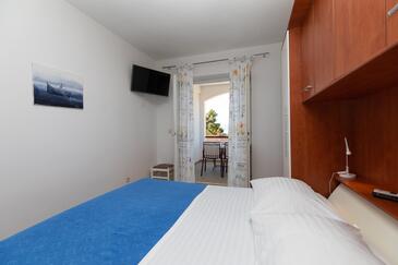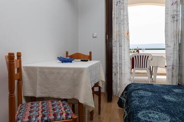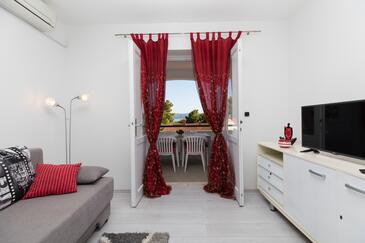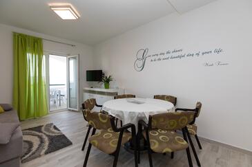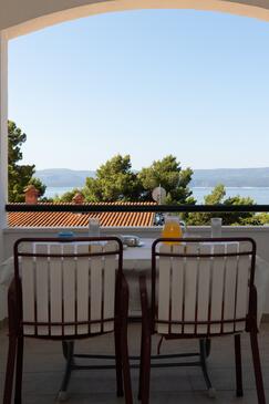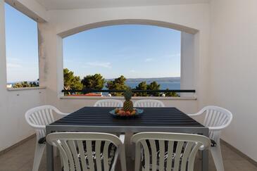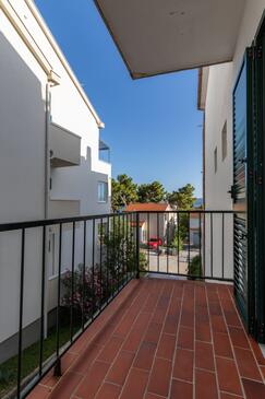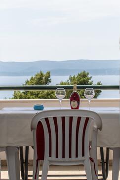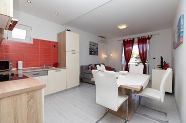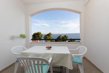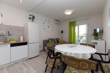Ferienwohnung bietet Platz für 6 Gäste. Die Betten sind in Schlafzimmern, die es 2 gibt, und in Wohnzimmer, innerhalb einer Gesamtfläche von 56m2, angeordnet. Die Gäste haben eine eigene Terrasse zur Verfügung, auf der sie in warmen Sommernächten genießen können. Das Apartment bietet Meerblick. Es ist erlaubt, Speisen auf dem Gemeinschafts-Grill vorzubereiten.