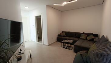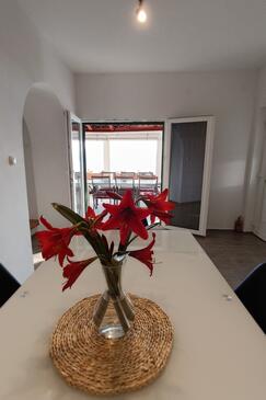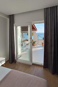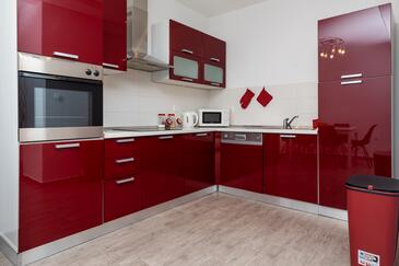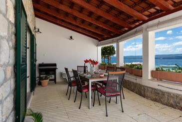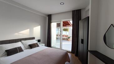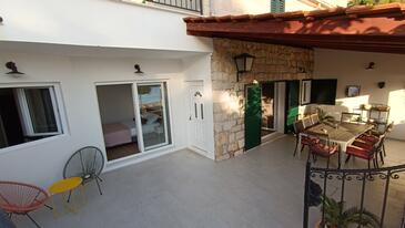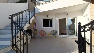 Ferienwohnung bietet Platz für 8 Gäste. Die Betten sind in Schlafzimmern, die es 4 gibt, innerhalb einer Gesamtfläche von 107m2, angeordnet. Die Gäste haben eine eigene Terrasse zur Verfügung, auf der sie in warmen Sommernächten genießen können. Das Apartment bietet Meerblick. Es ist erlaubt, Speisen auf dem Gemeinschafts-Grill vorzubereiten.