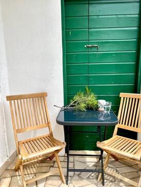 Ferienwohnung bietet Platz für 4 Gäste. Die Betten sind in Schlafzimmern, die es 1 gibt, und in Wohnzimmer, innerhalb einer Gesamtfläche von 47m2, angeordnet. Die Gäste haben eine eigene Terrasse zur Verfügung, auf der sie in warmen Sommernächten genießen können. Das Apartment bietet Meerblick. Es ist erlaubt, Speisen auf dem Gemeinschafts-Grill vorzubereiten.