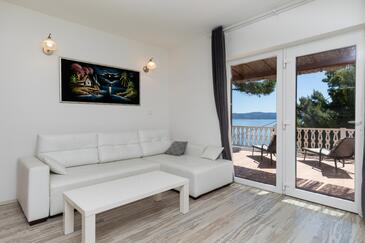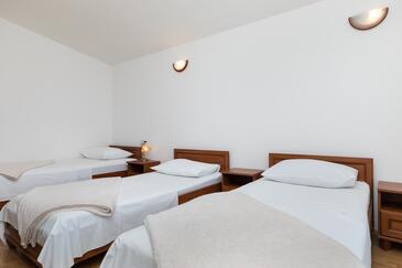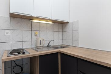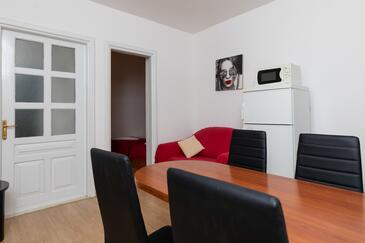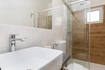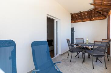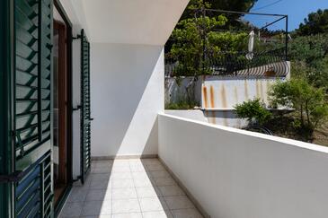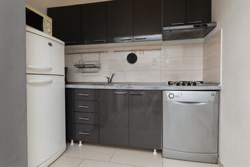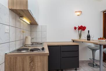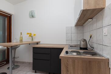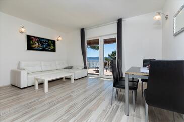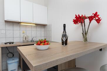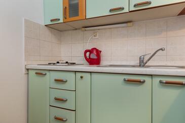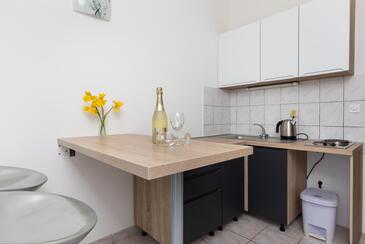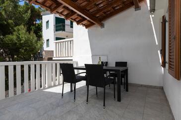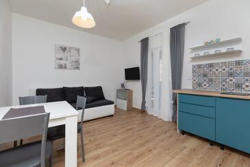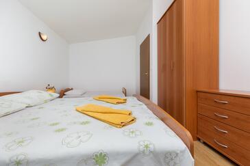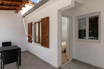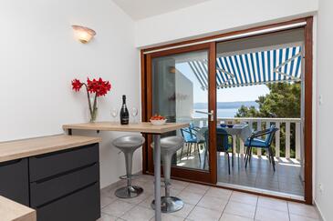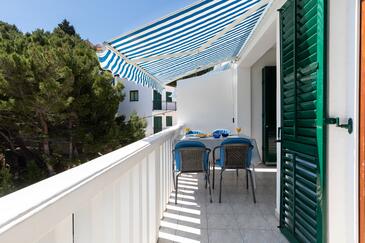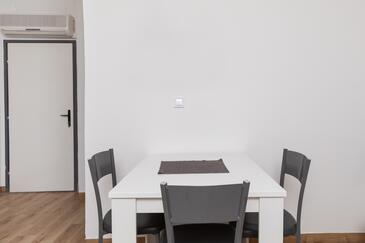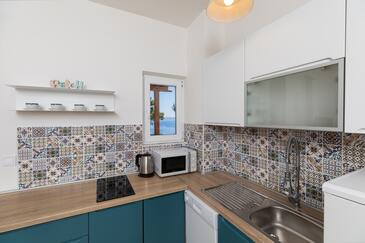 Ferienwohnung bietet Platz für 5 Gäste. Die Betten sind in Schlafzimmern, die es 2 gibt, innerhalb einer Gesamtfläche von 41m2, angeordnet. Die Gäste haben eine eigene Terrasse zur Verfügung, auf der sie in warmen Sommernächten genießen können. Das Apartment bietet Meerblick. Es ist erlaubt, Speisen auf dem Gemeinschafts-Grill vorzubereiten.