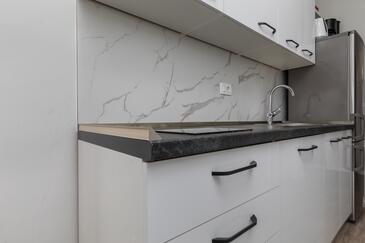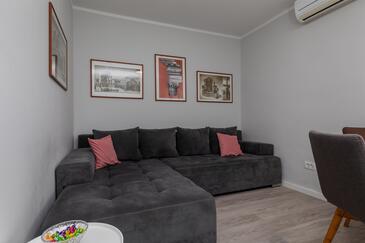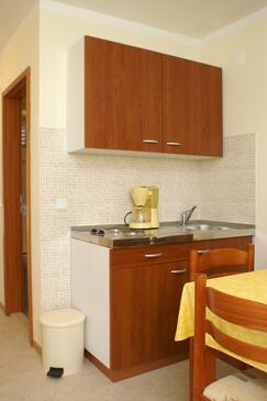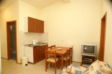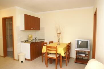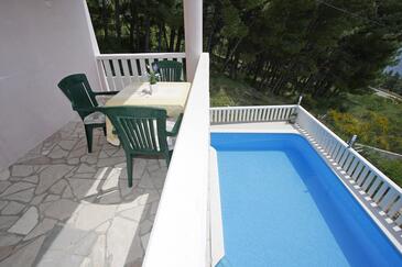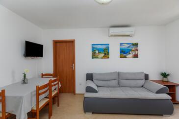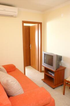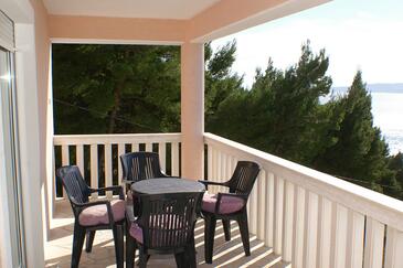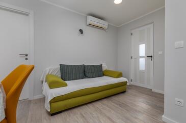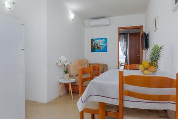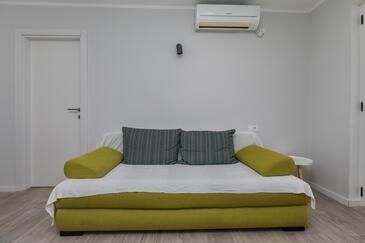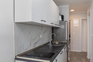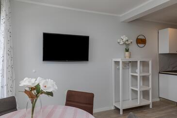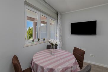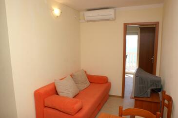 Ferienwohnung bietet Platz für 5 Gäste. Die Betten sind in Schlafzimmern, die es 2 gibt, und in Wohnzimmer, innerhalb einer Gesamtfläche von 38m2, angeordnet. Die Gäste haben eine eigene Terrasse zur Verfügung, auf der sie in warmen Sommernächten genießen können. Das Apartment bietet Meerblick. Es ist erlaubt, Speisen auf dem Gemeinschafts-Grill vorzubereiten. Während ihres Aufenthalts können Gäste das gemeinsam zur Nutzung stehende Schwimmbad benutzen.