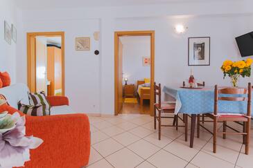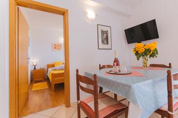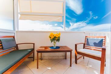 Ferienwohnung bietet Platz für 2 Gäste. Die Betten sind in Schlafzimmern, die es 1 gibt, innerhalb einer Gesamtfläche von 29m2, angeordnet. Die Gäste haben eine eigene Terrasse zur Verfügung, auf der sie in warmen Sommernächten genießen können. Das Apartment bietet Meerblick. Es ist erlaubt, Speisen auf dem Gemeinschafts-Grill vorzubereiten.