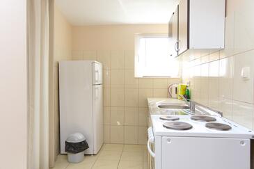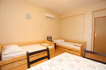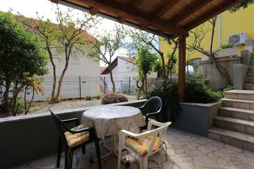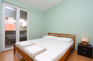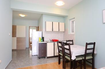 Ferienwohnung bietet Platz für 4 Gäste. Die Betten sind in Schlafzimmern, die es 1 gibt, und in Esszimmer, innerhalb einer Gesamtfläche von 31m2, angeordnet. Die Gäste haben eine eigene Terrasse zur Verfügung, auf der sie in warmen Sommernächten genießen können. Das Apartment bietet Meerblick. Es ist erlaubt, Speisen auf dem Gemeinschafts-Grill vorzubereiten.